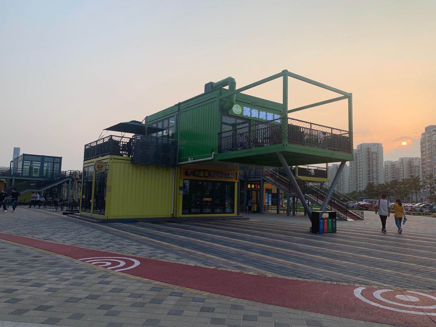建設(shè)美食街的模塊化房屋采用三種規(guī)格,共計36套模塊單元,建筑面積約1000平方米。局部二層設(shè)計,擺放錯落有致,六種顏色搭配,靚麗時尚。