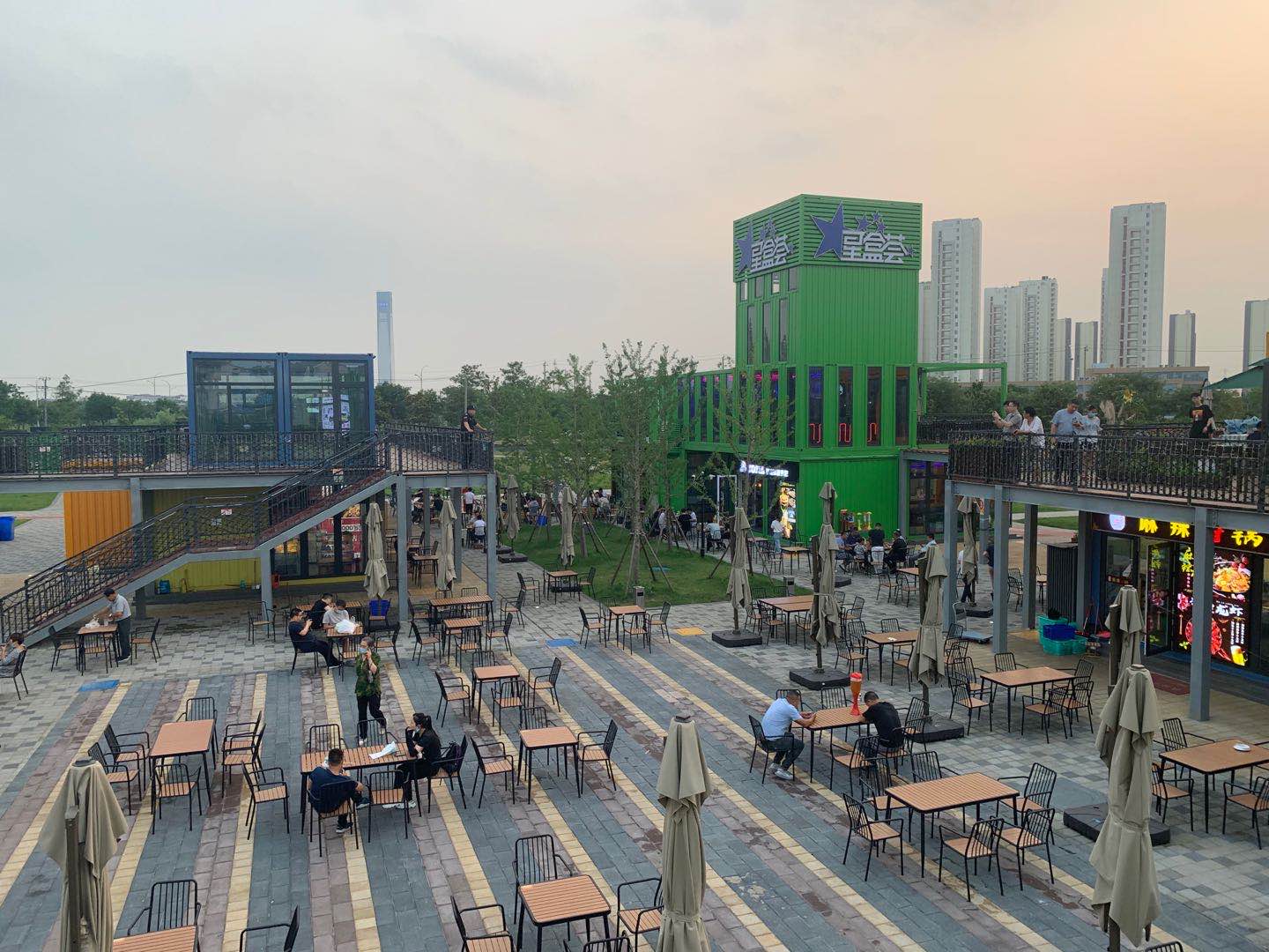 這是位于昆山市南星瀆商業(yè)中心二期的美食街,在多幢住宅之中脫穎而出,獨特而又時尚。